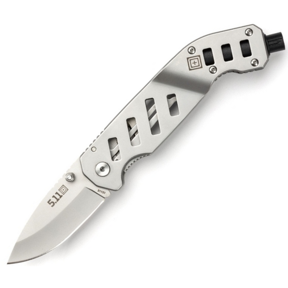Ключевое дополнение линейки профессиональных ножей 5.11® — нож ESC Rescue. Если верить телевизору, выбраться из разбитой машины очень легко... но это так только кажется. Пристяжные ремни и стекла автомобилей очень прочны, и, как Вы понимаете, не просто так. В любом случае, что ремень, что стекло — не препятствие для спасения, если у Вас при себе нож ESC Rescue. Подпружиненный стеклобой из карбидового сплава легко разобьет даже прочное стекло, раскладной стропорез (фактически, второе лезвие специальной формы) прекрасно режет полотно пристяжного ремня. Основное лезвие ножа (6.35 см или 2.5 дюйма, дроп-пойнт) справится со всеми остальными проблемами... Если с ними вообще можно справиться при помощи короткого острого лезвия. Небольшой и простой с виду нож — на самом деле, превосходный инструмент спасателя.