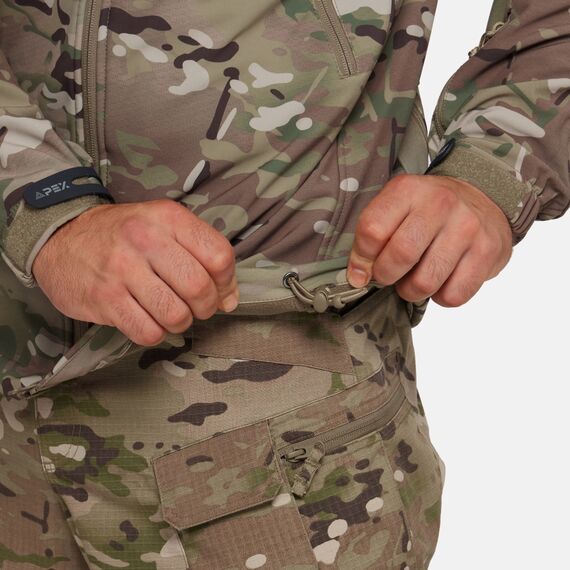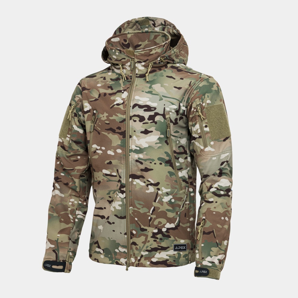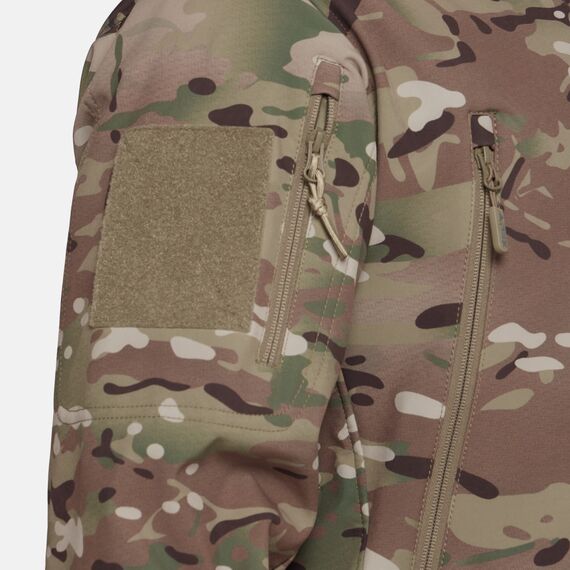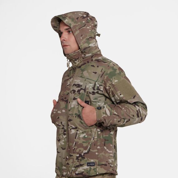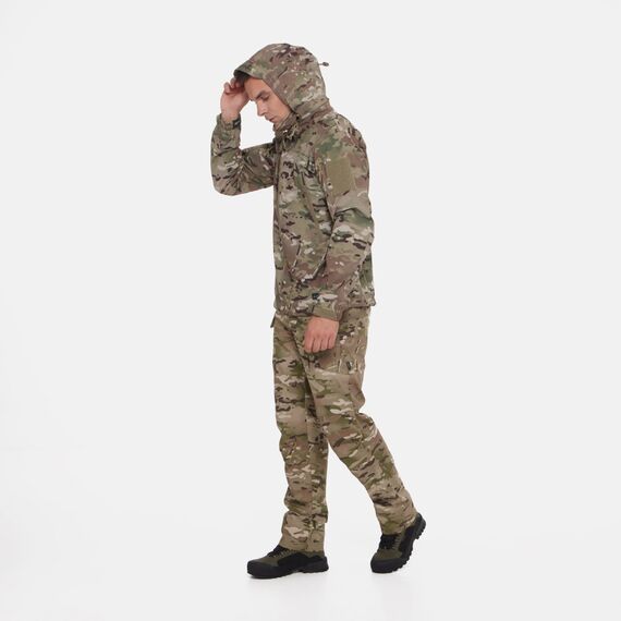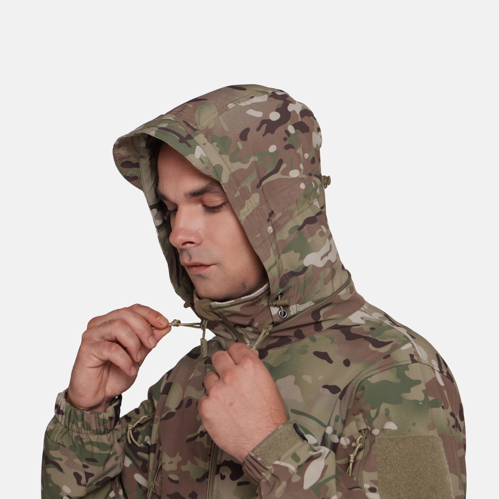 Снаружи куртка останавливает ветер, воду и грязь, выводя при этом излишнюю влагу наружу, а в это же время легкая флисовая подкладка хорошо греет. Складной капюшон можно убрать в воротник, его можно легко отрегулировать с помощью утяжек в карманах на груди. Капюшон надежно защитит голову от ветра и воды. Удобное расположение карманов обеспечит доступ к ним в любом положении. Локти усилены для защиты куртки от преждевременного износа в этих зонах. На предплечьях имеются панели Velcro.