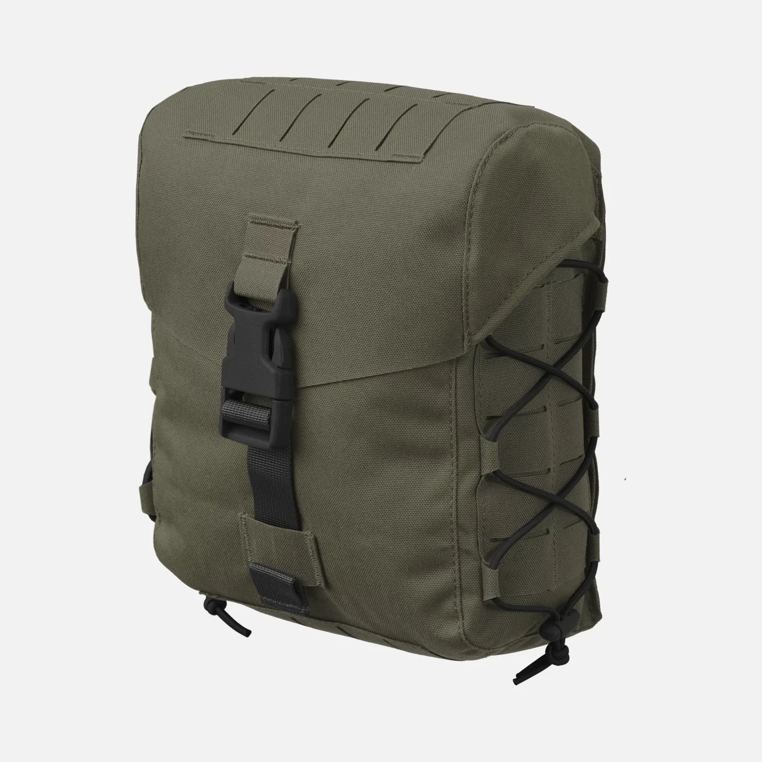 Большая универсальная сумка, предназначенная в основном для ношения на задней части модульного ремня MOSQUITO® или аналогичной конструкции ремня. Большая вместительная сумка позволяет упаковать все необходимое, а воротник-кулиска надежно фиксирует содержимое, а клапан с застежкой защищает от пыли и грязи. Новые функции включают систему лазерной резки, совместимую с MOLLE/PALS, на клапане крышки коробки, закрывающемся на пряжку, и дополнительный паракорд по бокам, чтобы уменьшить объем пустого места или прикрепить предметы. Подсумок не только совместим с модульной системой MOLLE/PALS, но и, благодаря петлям из паракорда, может крепиться на любой оружейный ремень шириной до 45 мм.