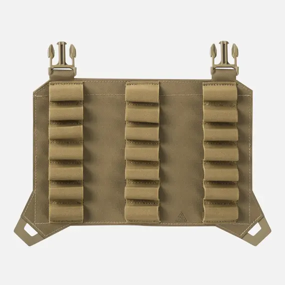 ПАТРОН ДЛЯ дробовика КЛАПАН - это дополнительный передний клапан для держателя пластин, особенно для системы SPITFIRE®.но для системы SPITFIRE®. Эластичные петли, вшитые в три вертикальных ряда по поверхности, предназначены для переноски стандартных патронов для дробовика 12GA (весь клапан позволяет вместить до 21 патрона). Каждую колонну можно легко использовать для различных типов патронов, не рискуя их перепутать. Клапан изготовлен в основном из фирменного ламината для дополнительной прочности. Клапан крепится к специальным отверстиям на держателе пластины или к интерфейсу грудной клетки с помощью прикрепленных пряжек для конфигураций QD. Совместим с пластиночными креплениями SPITFIRE® MK I или MK II и HELLCAT®.