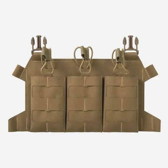 Чрезвычайно легкий скелетированный клапан, предназначенный для переноски трех магазинов M4/AR15. Оснащен модульной системой лазерной резки, совместимой с MOLLE/PALS. Клапан идеально подходит для крепления кассет BEARCAT® и системы SPITFIRE®. Магазины крепятся сверху эластичным шнуром с ручками Hypalon®. Благодаря дополнительному интерфейсу его можно превратить в компактное устройство для переноски на груди.