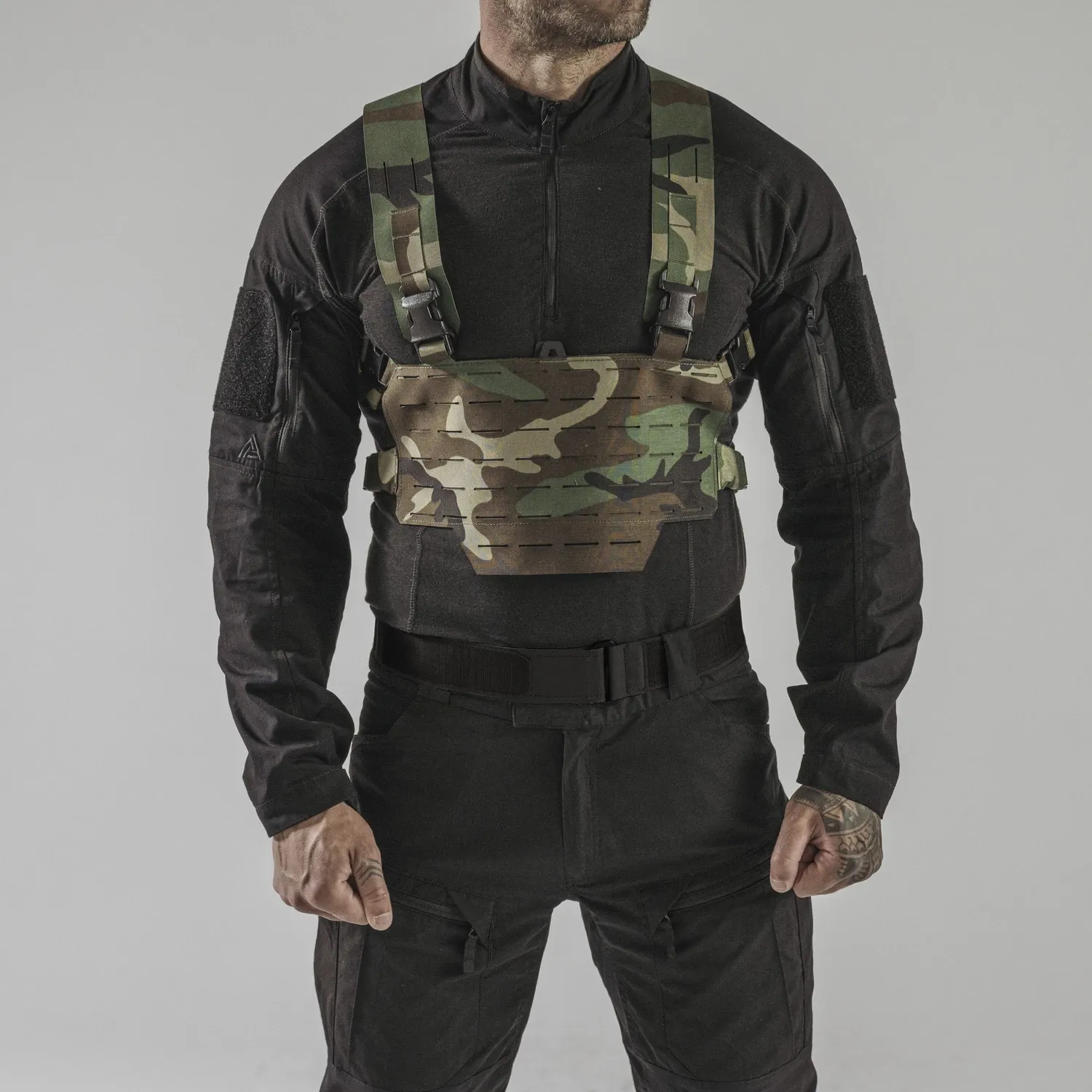 Самый маленький нагрудный ремень серии WARWICK®.. Изготовленная из фирменного ламината, эта установка покрыта модульной системой, совместимой с MOLLE/PALS, выполненной лазерной резкой. Это снаряжение представляет собой базовую модульную платформу, поэтому на его поверхности отсутствуют какие-либо дополнительные патроны или подсумки, что делает его максимально плоским и легким. В плоском внутреннем кармане, закрывающемся на липучку®, можно хранить карту, фотографии целей или любой другой небольшой плоский предмет. Установка может быть прикреплена непосредственно к одному из наших держателей пластин.
