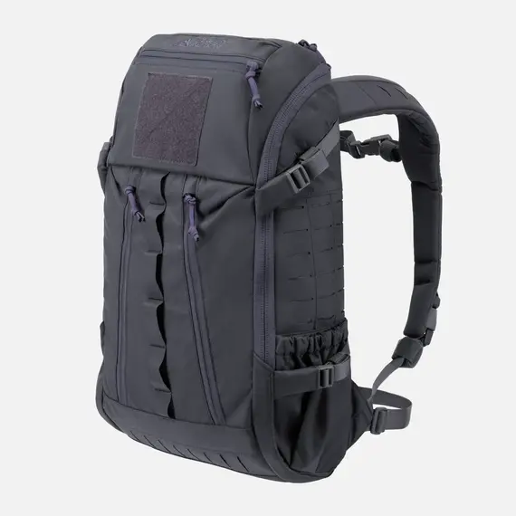 Спереди имеется сетчатый карман на молнии и два небольших наружных кармана на молнии, один из которых на велюровой подкладке для очков. Также имеется большая петля для идентификации или размещения маркера "свой-чужой", два плоских кармана с диагональными молниями и "ромашковая цепочка". Внизу расположена модульная панель для дополнительных карманов, а по бокам имеется трехрядная система MOLLE/PALS с частично эластичными карманами для бутылок или фляг и отверстиями для системы увлажнения.