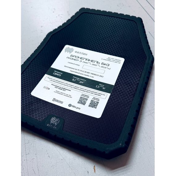 Типоразмер 3: 340x270x21 мм, вес 1.5±0.1 кг, площадь защиты 8.54 дм².