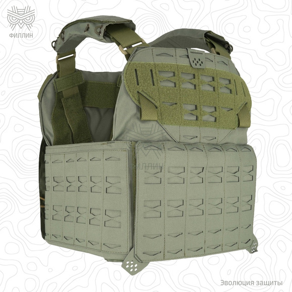MOLLE-интерфейс выполнен по технологии «MOLLE-перфорация», что позволяет снизить вес бронежилета, не потеряв при этом в функциональности. Профиль ячеек для размещения снаряжения имеет особую форму, упрощающую установку и снятие подсумков. Технологии ламинирования и армирования предотвращают растягивание материала даже под серьезными нагрузками.