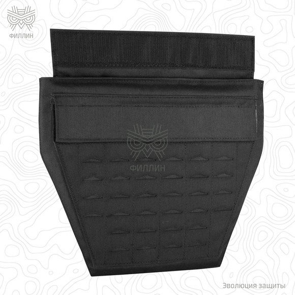 Чехол для размещения пахового баллистического пакета или его заменителей для защиты самого ценного. Крепится к бронежилету или плитоносцу при помощи велкро-панели на верхней части изделия. Конструкция чехла подразумевает ношение не только кевлара, но и бронеплиты под формат чехла, либо дополнительного слоя мягкой защиты.