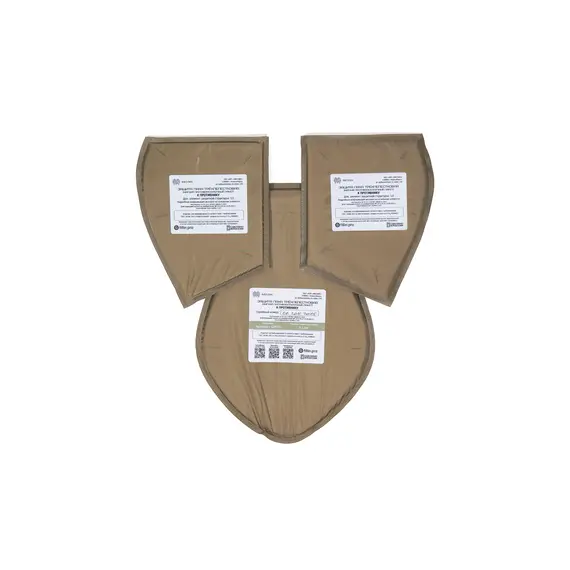 Комплект противоосколочных пакетов по классу защиты С2 для установки в трёхлепестковый чехол модуля защиты паховой зоны. Противоосколочные пакеты состоят из комбинации слоёв СВМПЭ и арамидных тканей. Пакет герметично упакован в водонепроницаемую ткань с мембранными свойствами. По все пакеты запаиваются ультразвуковой машиной для предотвращения попадания влаги внутрь.
