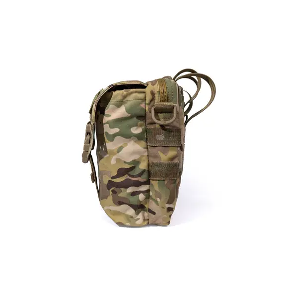На задней поверхности сумки присутствует MOLLE-интерфейс для размещения сумки, например, на рюкзаках или же на спинной части бронежилета. По бокам и на нижней части сумки также есть ряд строп MOLLE для размещения дополнительных подсумков или же жгутов-турникетов. Присутствуют широкие люверсы для удаления мусора и стока воды.