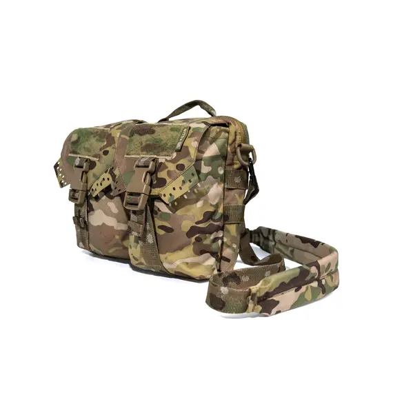 На задней поверхности сумки присутствует MOLLE-интерфейс для размещения сумки, например, на рюкзаках или же на спинной части бронежилета. По бокам и на нижней части сумки также есть ряд строп MOLLE для размещения дополнительных подсумков или же жгутов-турникетов. Присутствуют широкие люверсы для удаления мусора и стока воды.