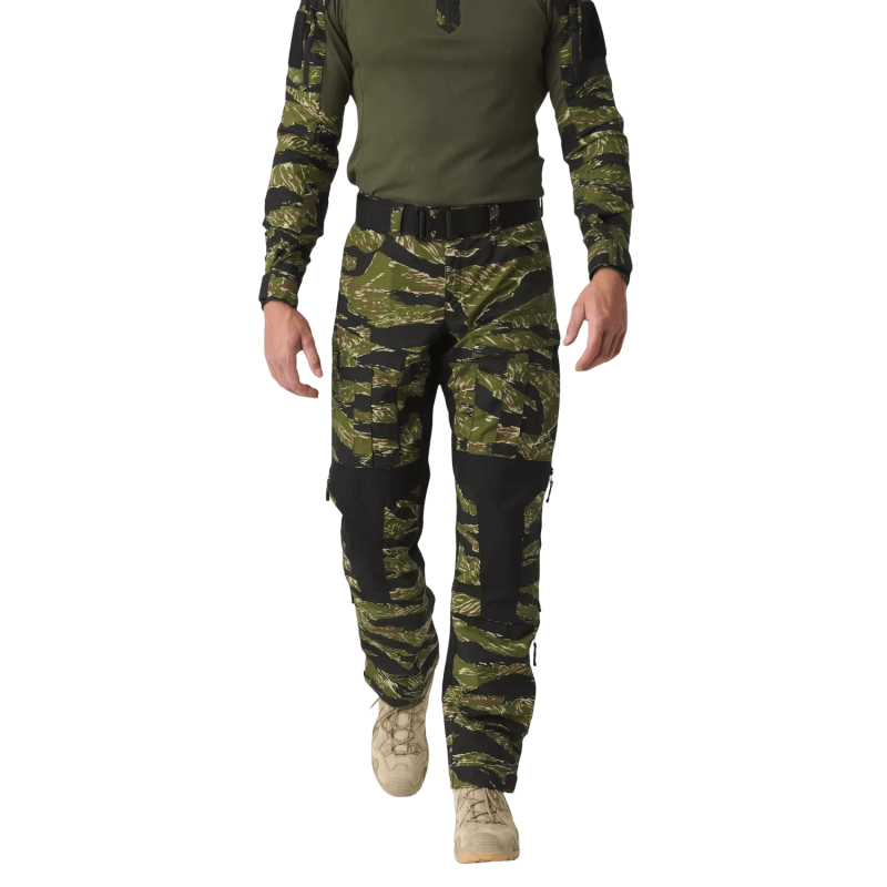 Область колена усилена тканью Cordura 500D с прорезями для защитных вставок. Благодаря дополнительным завязкам, расположенным под коленом и внизу штанины, брюки легко регулируются по ноге.