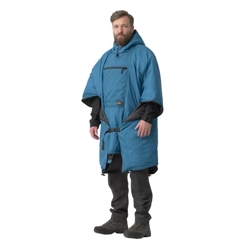 Самое очевидное и простое применение Swagman Roll® — в качестве пончо. На талии есть эластичные ленты, которые, будучи застегнутыми, плотно прилегают к телу, напоминая импровизированную куртку-анорак с большим передним карманом. Оно защищает от холода благодаря современной изоляции Climashield® Apex™ весом 67 г/м², которая сохраняет тепло даже во влажном состоянии. В сочетании с нашим пончо модели US Swagman образует двухслойную конструкцию: внутренний слой обеспечивает тепло, а внешний — защиту от дождя.
