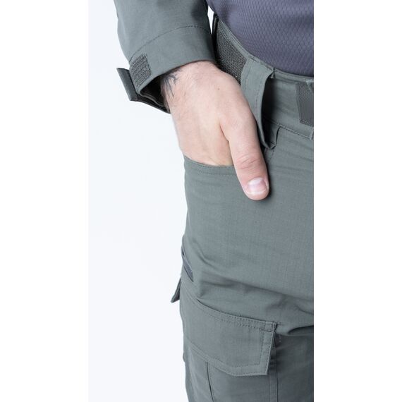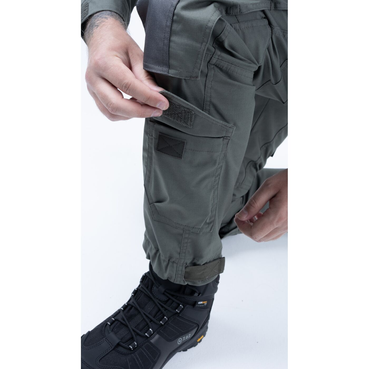 Удобный анатомический крой. Брюки застегиваются на молнию и пуговицу. Пояс широкий, резинка для комфортной посадки. 6 шлевок, подойдут под широкий ремень до 6 см. 8 вместительных карманов: 2 боковых прорезных, по 2 на бедрах, в области коленей и сзади — на пуговицах. Низ брюк на резинке.