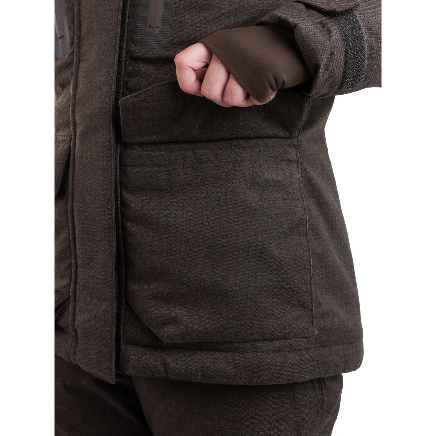 Внутренний подклад из ткани вельбоа дарит невероятное тепло и влагоотведение, а его гладкая текстура исключает неудобства, гарантируя комфорт при любом термобелье. Вы можете смело выбирать любые слои, зная, что Вас не подведет ни один из них.