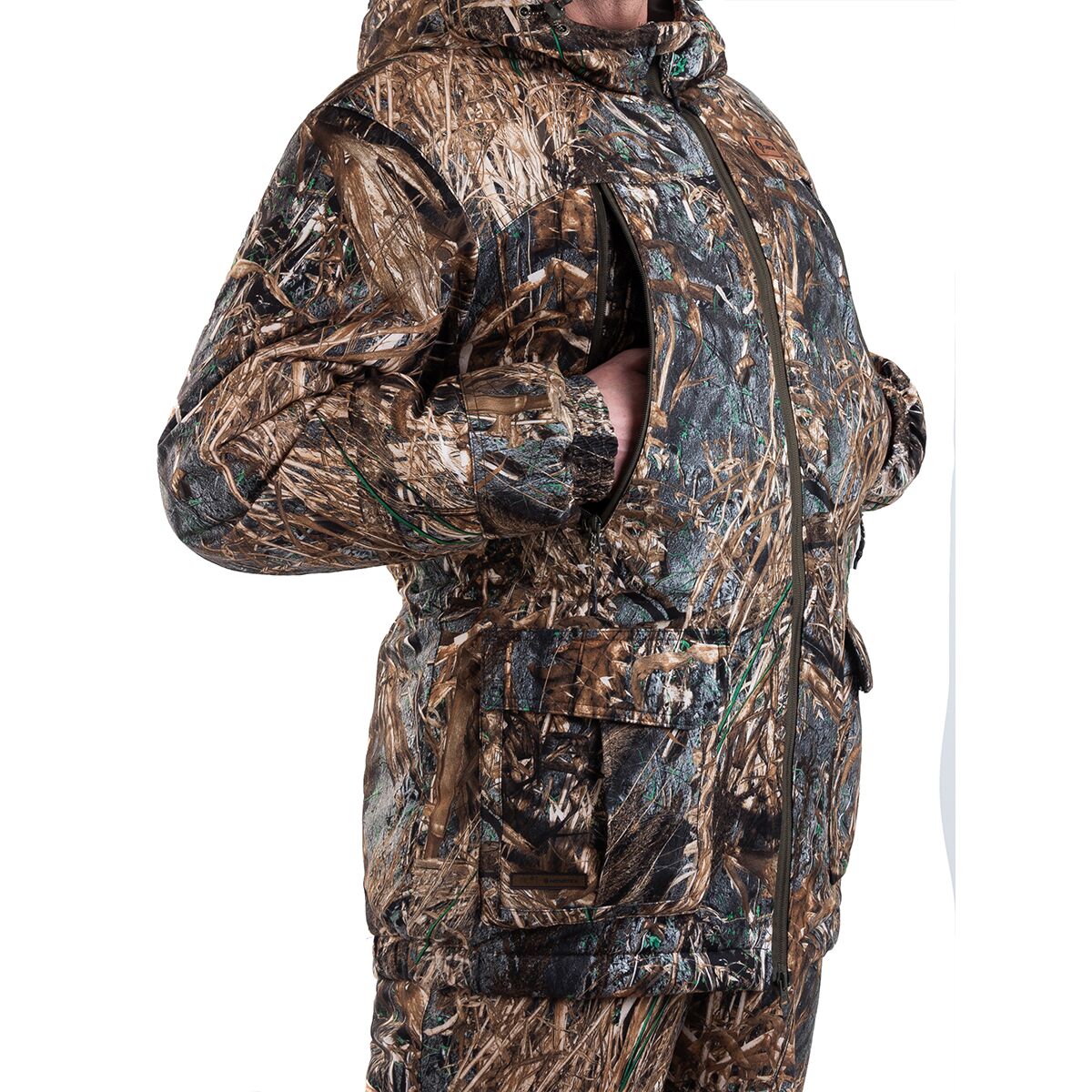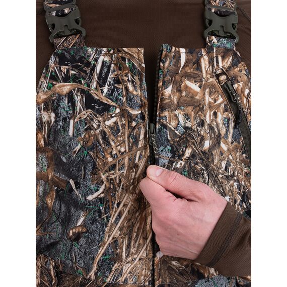 Основной материал костюма - бесшумная мембранная ткань алова с мембраной PROTEKT, которая обеспечивает превосходную защиту от ветра и влаги. Это значит, что Вы можете сосредоточиться на своей цели, не беспокоясь о погодных условиях. Высокий полукомбинезон, входящий в комплект, защищает грудь и спину от холода, создавая дополнительный слой тепла. Благодаря этому костюм идеально подходит для использования при температуре до -15 градусов. Для достижения максимального комфорта рекомендуется использовать костюм в комбинации с термобельем и утеплением, которые эффективно отводят влагу, сохраняя Ваше тело сухим и теплым.
