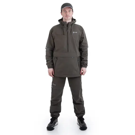 Состоит из куртки типа «анорак» с капюшоном и брюк прямого кроя. Костюм оснащен специальными ловушками для клещей, внутри куртки предусмотрен дополнительный слой хлопковой трикотажной ткани, которая заправляется в брюки для максимальной защиты от проникновения внутрь изделия. Низ куртки регулируется для дополнительного комфорта. Рукава оснащены плотными трикотажными манжетами. Капюшон с отстегивающейся противомоскитной сеткой, которая компактно укладывается в карман на груди. На куртке большой карман-кунгуру с 2-мя входами на молнии и влагозащитный карман под клапаном. Эластичный пояс со шлевками и внутренней резинкой гарантирует идеальную посадку. Низ брюк собран на резинку, что обеспечивает дополнительный комфорт во время движения. Два боковых кармана без застежки дополняют функциональность модели. Внутренние манжеты на штрипках позволяют заправлять брюки в ботинки для максимальной защиты. Этот костюм отлично подойдет для всех, кто часто и долго бывает в лесу. Для обеспечения безопасности в темное время суток вся печать на изделии является светоотражающей, а также имеются светоотражающие канты.