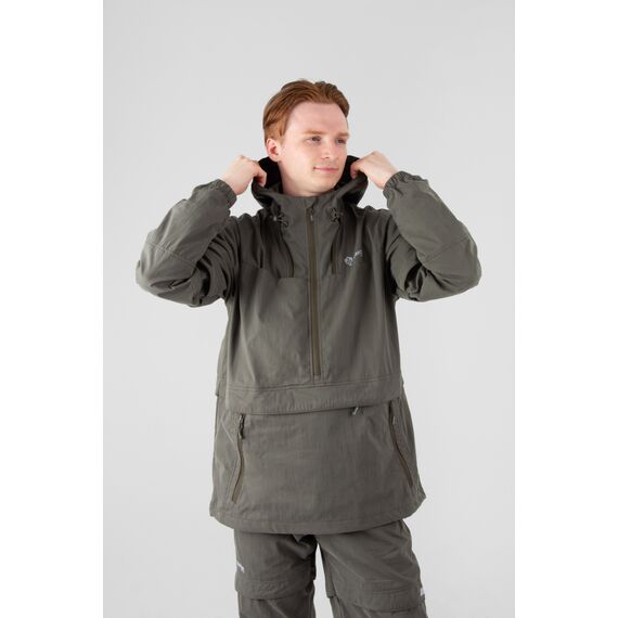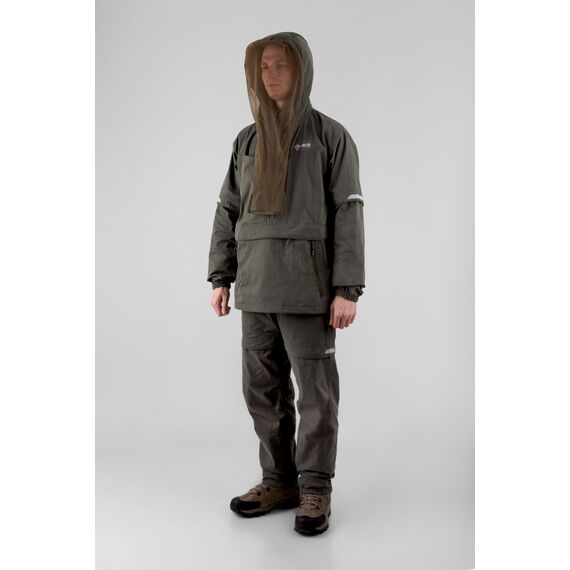 Состоит из куртки типа «анорак» с капюшоном и брюк прямого кроя. Костюм оснащен специальными ловушками для клещей, внутри куртки предусмотрен дополнительный слой хлопковой трикотажной ткани, которая заправляется в брюки для максимальной защиты от проникновения внутрь изделия. Низ куртки регулируется для дополнительного комфорта. Рукава оснащены плотными трикотажными манжетами. Капюшон с отстегивающейся противомоскитной сеткой, которая компактно укладывается в карман на груди. На куртке большой карман-кунгуру с 2-мя входами на молнии и влагозащитный карман под клапаном. Эластичный пояс со шлевками и внутренней резинкой гарантирует идеальную посадку. Низ брюк собран на резинку, что обеспечивает дополнительный комфорт во время движения. Два боковых кармана без застежки дополняют функциональность модели. Внутренние манжеты на штрипках позволяют заправлять брюки в ботинки для максимальной защиты. Этот костюм отлично подойдет для всех, кто часто и долго бывает в лесу. Для обеспечения безопасности в темное время суток вся печать на изделии является светоотражающей, а также имеются светоотражающие канты.