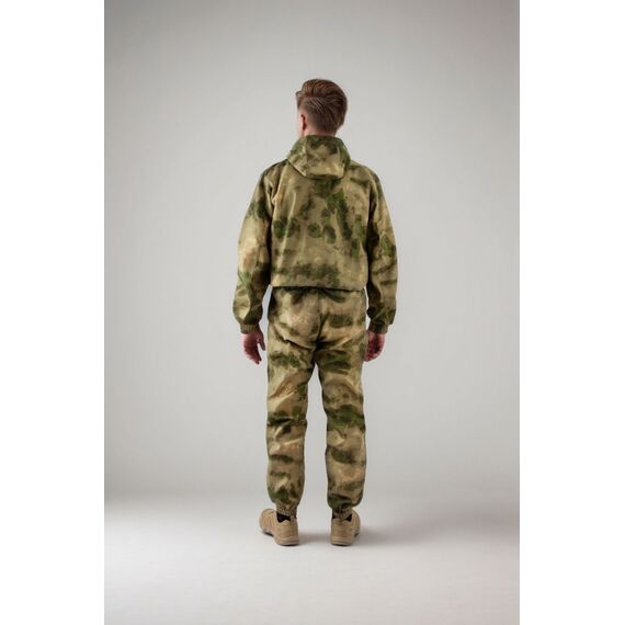 Летний универсальный костюм Пионер из легкой и дышащей ткани - отличный выбор для летней рыбалки, походов, тактических игр. Низ укороченной куртки собран на широкую простроченную резинку. Капюшон регулируется по овалу лица. Два нагрудных кармана закрываются на клапаны с липучками, два нижних кармана с двойными листочками без застежки. Низ брюк и рукавов на резинке.