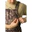 Высокие брюки-полукомбинезон собраны на резинку по линии пояса.
