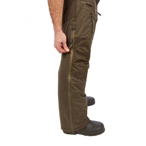 Костюм анатомического кроя, выполнен из бесшумной мембранной ткани "Бавария". Применение ниток WR защитит от проникновения влаги сквозь швы.. В качестве подкладки применяется ткань вельбоа, обеспечивающая теплоизоляцию, влагоотведение, а также комфортное применение любого термобелья и утепляющих слоев за счет своей гладкости (утепляющие слои не цепляются за подклад). Также в составе утепляющего пакета применяется слой ткани с металлическим напылением для лучшего сохранения тепла. В сочетании с утеплителем Русский север комфортно себя ощущать при температуре до -35 градусов при активном движении и до -20 градусов в статике. Применение современных материалов позволило снизить вес костюма, что позволит охотнику меньше уставать при длительных переходах. На куртке предусмотрены карманы под рацию (для левшей и правшей). На куртке присутствует вентиляция в боковом шве. На брюках используется высокая молния с двумя бегунками, которая также выполняет роль вентиляции.