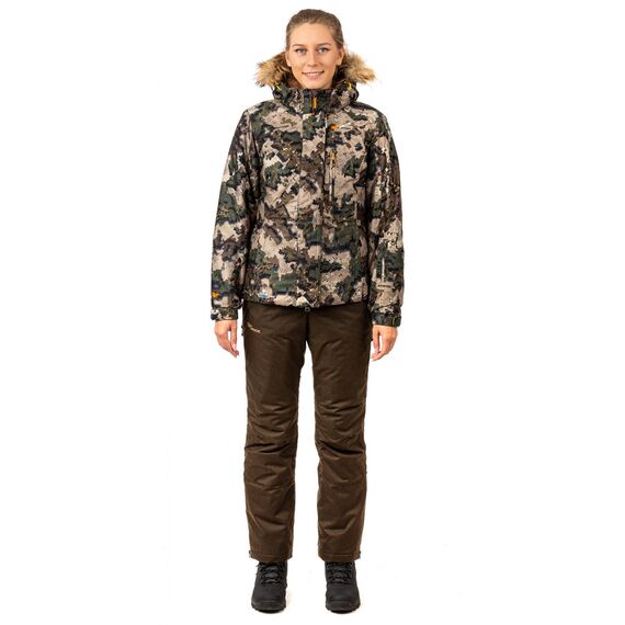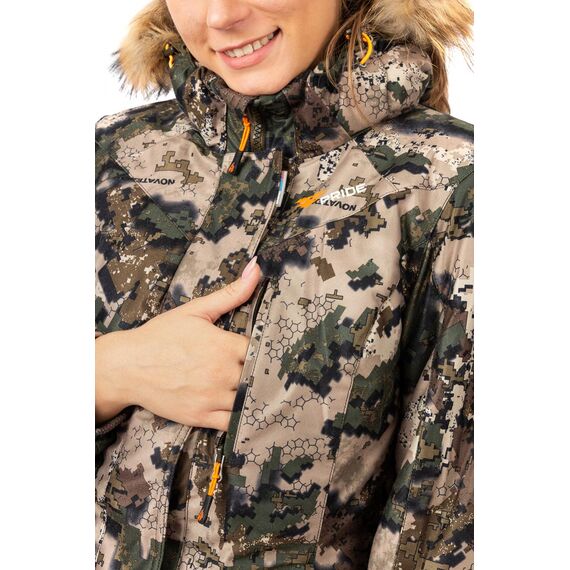 Куртка изготовлена из высококачественной водонепроницаемой и ветрозащитной мембранной ткани PROTECT 10000/10000. Этот инновационный материал обеспечивает надежную защиту от непогоды, сохраняя при этом воздухопроницаемость, что позволяет коже дышать и предотвращает перегрев. Приталенный силуэт подчеркивает женственные формы, а продуманный дизайн делает ее стильным и функциональным аксессуаром. Мембранная куртка оснащена удобными карманами на молнии - нагрудным и внутренним, которые надежно защитят Ваши личные вещи от ветра и влаги. Для максимального комфорта предусмотрены регулировки по капюшону и низу рукавов, а также утяжка по линии талии. Двойная ветрозащитная планка и индивидуальная упаковка дополняют список практичных функций этого изделия. В качестве утеплителя используется инновационный материал Русский Север, который обеспечивает сохранение тепла при температурах до -35°C. Подкладка выполнена из 100% хлопковой ткани в клетчатом принте. Камуфляжная расцветка "Кобра" делает эту охотничью куртку стильным и актуальным выбором для любителей активного отдыха на природе. Благодаря продуманному функционалу и качественным материалам, куртка Кобра от NOVATEX станет вашим надежным спутником в любую непогоду.