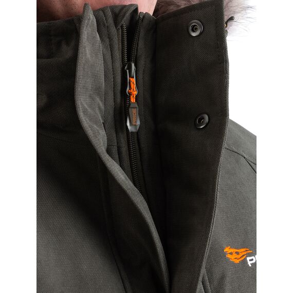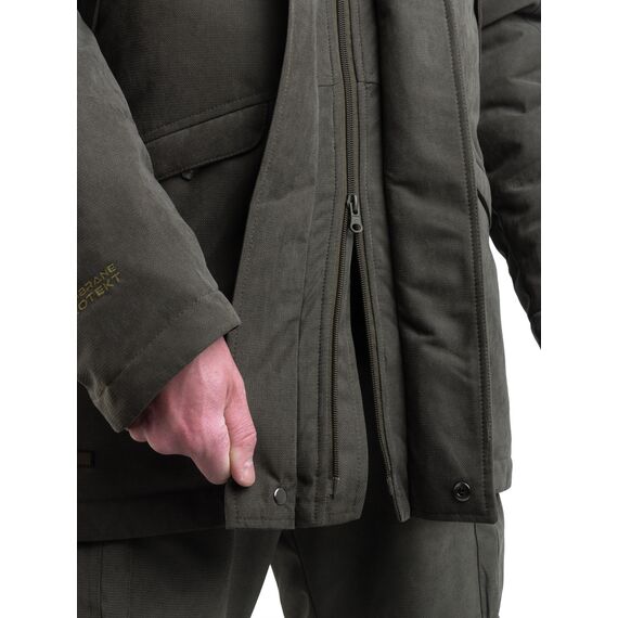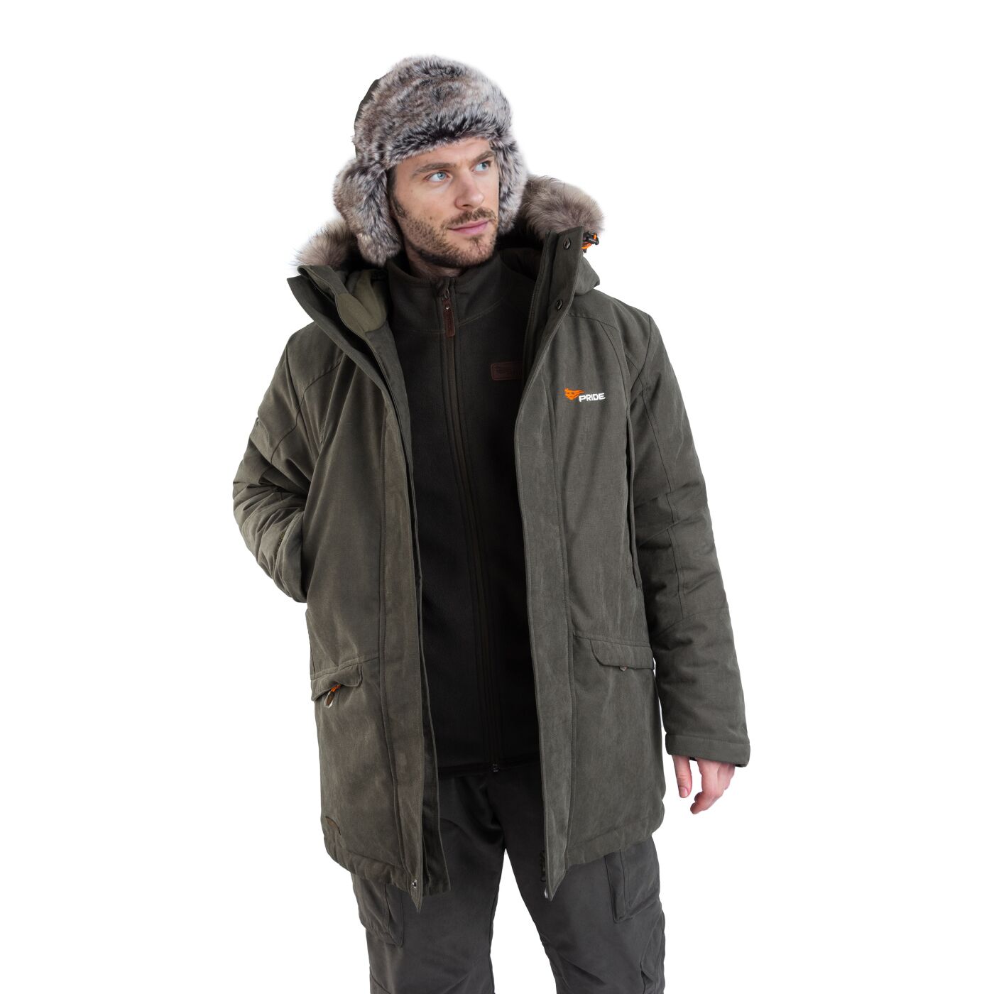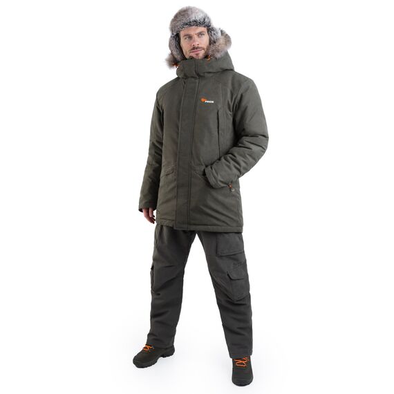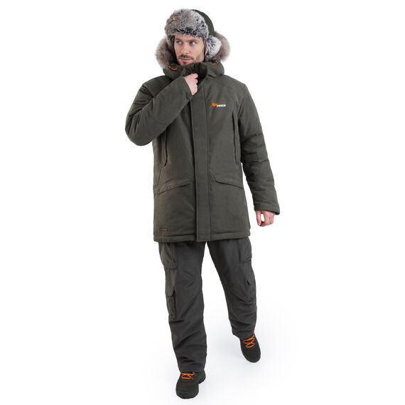 Универсальный функционал и современный дизайн позволяют носить куртку как на охоте, так и в городе. Мембранная ткань Исландия обеспечивает надежную защиту от ветра и мокрого снега. Помимо защиты от осадков, материал обладает высокой прочностью и практически бесшумен. Удлиненный крой, утяжка по талии, регулируемый капюшон с отделкой из натурального меха обеспечивают удобство и комфорт даже при температуре —35 С°.