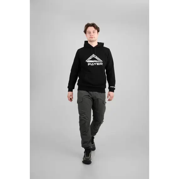 Толстовка из плотного хлопка с добавлением эластана создана для вашего удобства. Прямой крой, капюшон на шнурке и карман "кенгуру" делают её идеальной для повседневных дел, спорта и прогулок. Логотип Payer, нанесённый методом шелкографии, сохраняет яркость даже после многократных стирок. Манжеты и нижняя резинка из кашкорсе придают изделию долговечность
