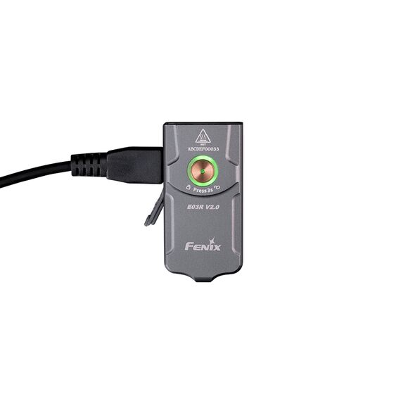 Fenix E03R V2.0 имеет крепкий, алюминиевый корпус серого оттенка. Несмотря на внешнюю миниатюрность и хрупкость конструкции, она стойко выдерживает падения с высоты порядка одного метра и работает даже в сложных погодных условиях. Модель защищена от воды и пыли согласно классу IP66, поэтому продолжает генерировать свет даже при прямом контакте с водой.