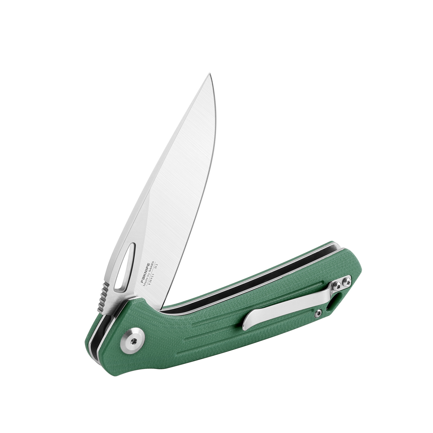 Нож складной Ganzo Firebird FH921 представляет собой карманное изделие, рассчитанное, в том числе, на использование в туризме. Особенность данной модели – в нетипичной форме рукояти, которая имеет выемку в верхней части ближе к обуху. Насечки на обухе способствуют лучшему сцеплению с пальцем пользователя. Другая характерная черта – отверстие в области клинка на месте, где обычно располагается шпенёк. Конструктивный элемент помогает легко открыть изделие рукой. Осевой винт обеспечен круглым металлическим подшипником.