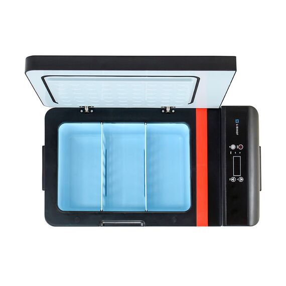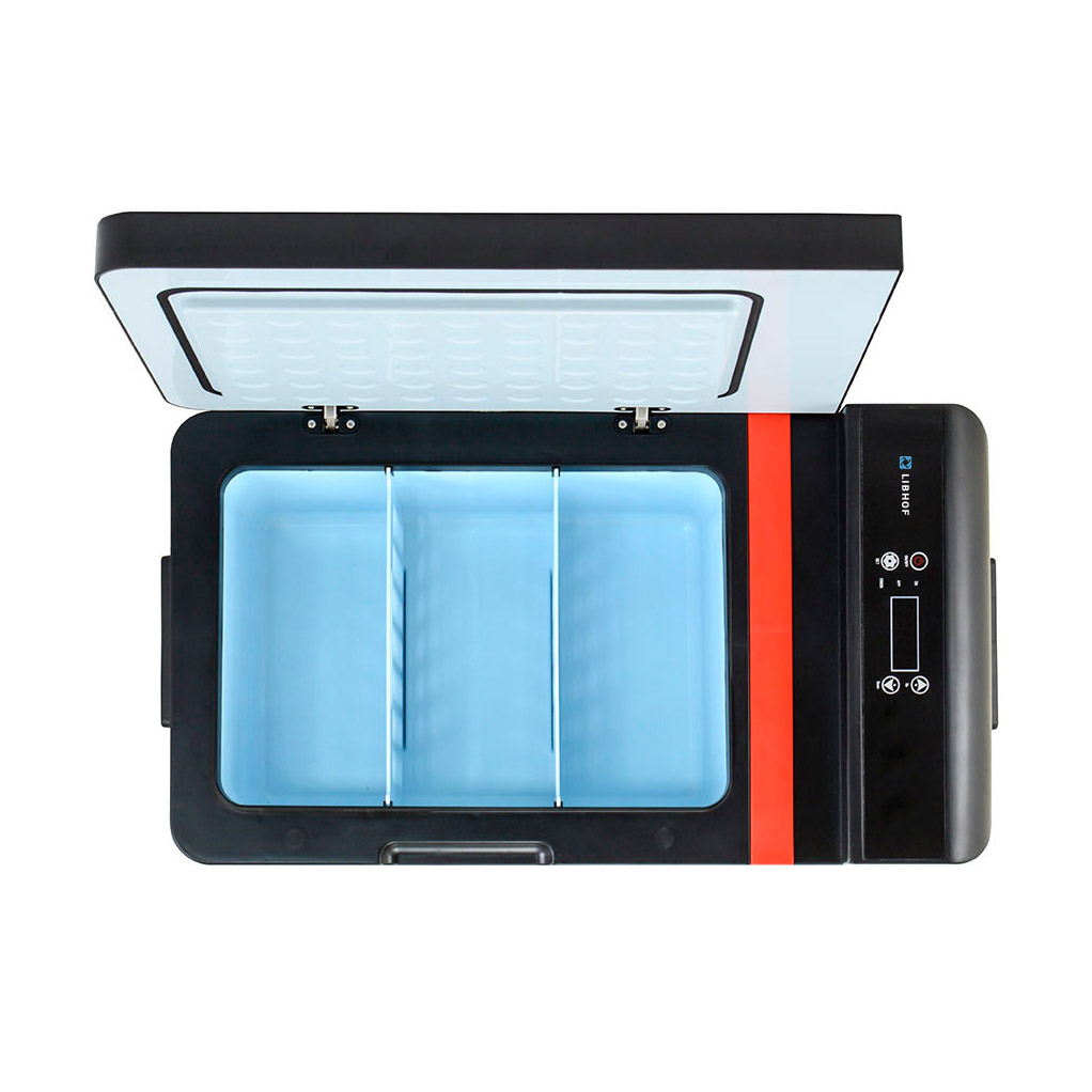 Как и все компрессорные холодильники Libhof, Q-18 имеет сенсорную панель управления, память настроек, трёхуровневую защиту от разряда аккумулятора. Диапазон настраиваемых температур от -25°C до +10°C, потребление энергии до 40 Ватт. Толстый изотермический слой стенок позволяет длительное время поддерживать низкую температуру внутри корпуса. Холодильник способен стабильно работать при наклонах до 45°.