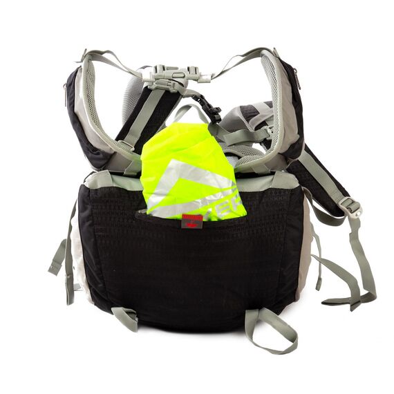 Объем рюкзака можно регулировать за счет боковых утяжек. Для обеспечения безопасности он оснащен светоотражающими элементами и свистком на передней застежке (фастексе). А в его нижней части располагается карман, в котором хранится влагозащитный чехол. Также следует отметить высококачественные молнии SBS.