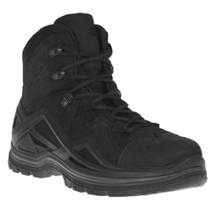 Ботинки PREPPER HIGH GTX Prabos, цвет Black — функциональная обувь для города, туризма и тактики. **Материал верха:** нубуковая кожа (прочная, дышащая, водоотталкивающая). **Подкладка:** мембрана Gore-tex Carbon Grey (100% защита от влаги). **Подошва:** многоуровневая Vibram EXPLORER...
