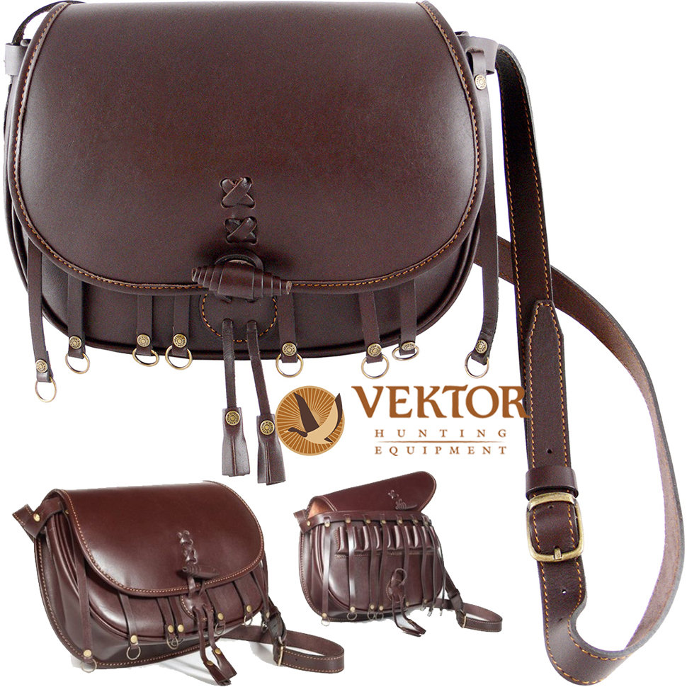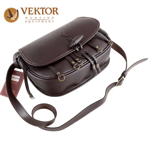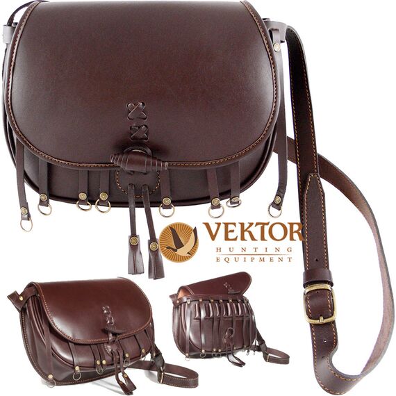 Ягдташ с патронташем и подвесками для дичи Vektor прочный и долговечный помощник на охоте и в дороге путешественника. Натуральная кожа хорошо держит форму - вещи внутри защищены от повреждений. Верхний клапан ягдташа имеет декоративную отделку. Застежка клапана, украшенная кожаными фестонами, расположена удобно, легко открывается и надежно закрывается. Под клапаном на равном расстоянии друг от друга закреплены тороки (подвесы для дичи) – 8 ремешков с кольцами для пойманной дичи. Такое расположение тороков очень удобно: закрепленная на них дичь не мешает поднятию верхнего клапана, чтобы заглянуть в сумку. Также под клапаном находится патронташ для удобного расположения в нем боеприпасов. Плечевой ремень регулируется по длине до 130 см. В отделке снаряжения используется качественная фирменная фурнитура компании Vektor. Настоящий ягдташ для охоты из кожи, украшенный декоративными элементами это не только функциональная, но и красивая, статусная вещь, которая создает классический завершенный образ и служит предметом гордости охотников. В производстве используется самое современное оборудование и материалы. Оттенки цвета кожи могут отличаться от фотографий. Ягдташ с патронташем и подвесками для дичи Vektor - характеристики объем главного отделения 3,5 литра Натуральная кожа высота 230 мм. ширина 310 мм. толщина 100 мм. размер упаковки 32x27x12 см.