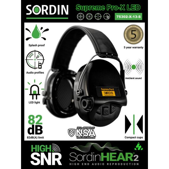 Камуфляжные активные наушники Sordin Supreme Pro-X Led Black