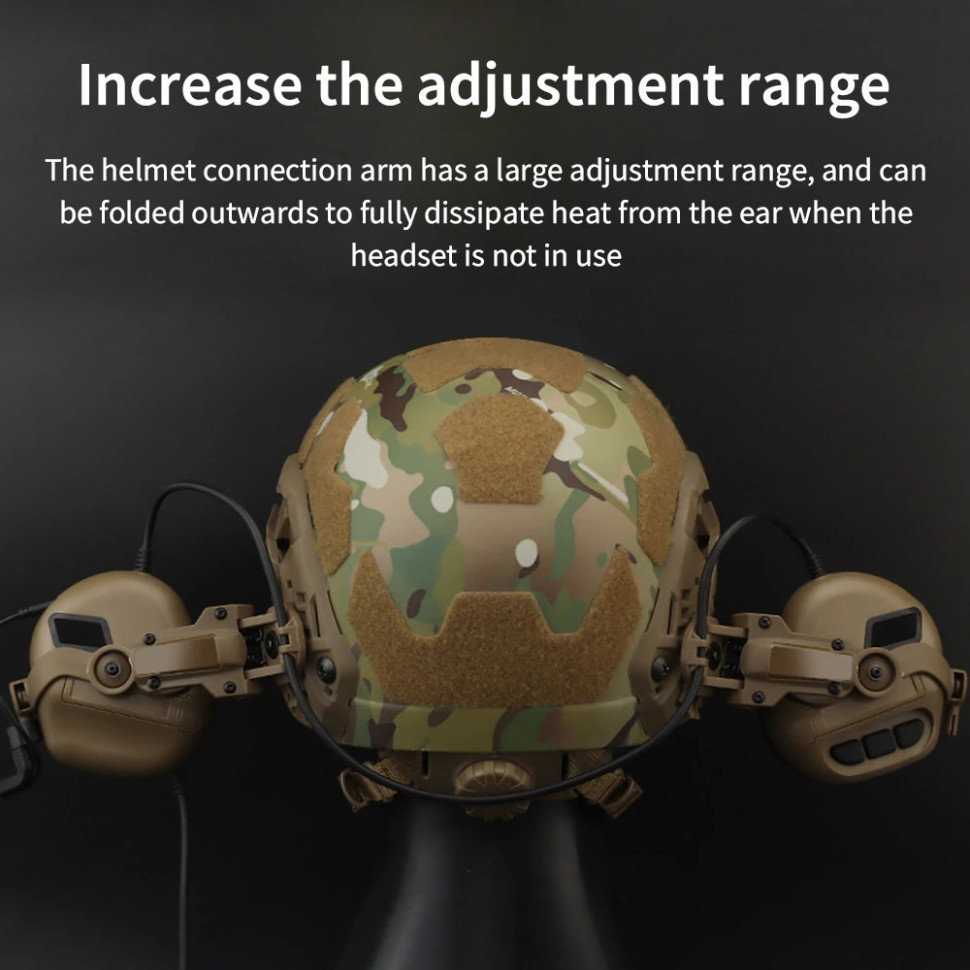 Крепление для наушников EARMOR на шлем (чебурашка) позволяет прочно зафиксировать наушники на вашем шлеме в нескольких положениях. В стандартном положении наушники плотно прилегают к ушам выполняя свою главную функцию защиты. Также вы можете развести наушники вбок, если вы их не используете, или повернуть и прижать к шлему для сохранения эргономики. Крепление для наушников EARMOR на шлем (чебурашка) предназначены для стандартных рельс шлемов типа ARC. Крепление для гарнитур и наушников Earmor с откидным механизмом сзади, совместимая с направляющими шлема ARC, разработаны для серий PLUS: M31 Plus, M32 Plus, M33 Plus. Имеет конструкцию с откидным механизмом вперед и назад с четырьмя регулируемыми шарнирами для подгонки под разные формы головы. Оптимизирована для очков ночного видения, увеличивает пространство для боковых направляющих благодаря прочной и легкой конструкции.