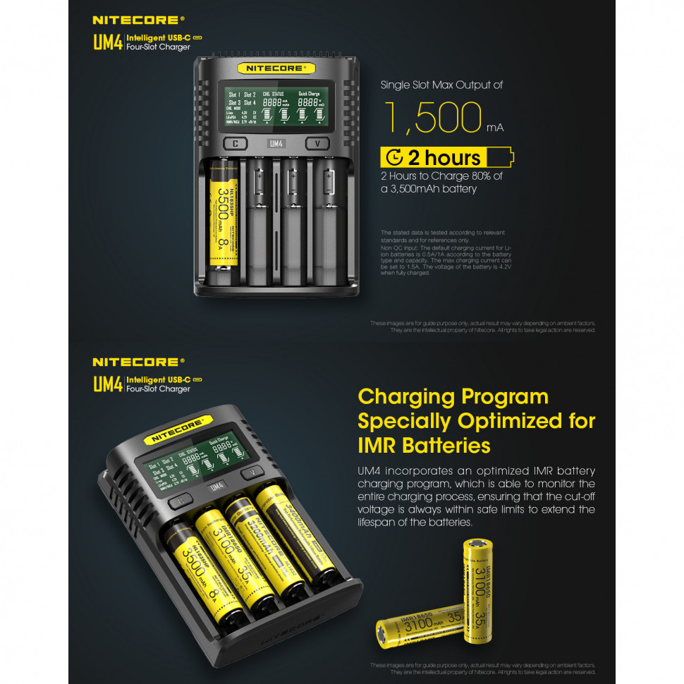 Зарядное устройство на 4 аккумулятора NITECORE UM4 (18650/16340 автоматическое определение)