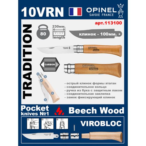 Складной нож Opinel Carbon 10VRN (ручка из бука)