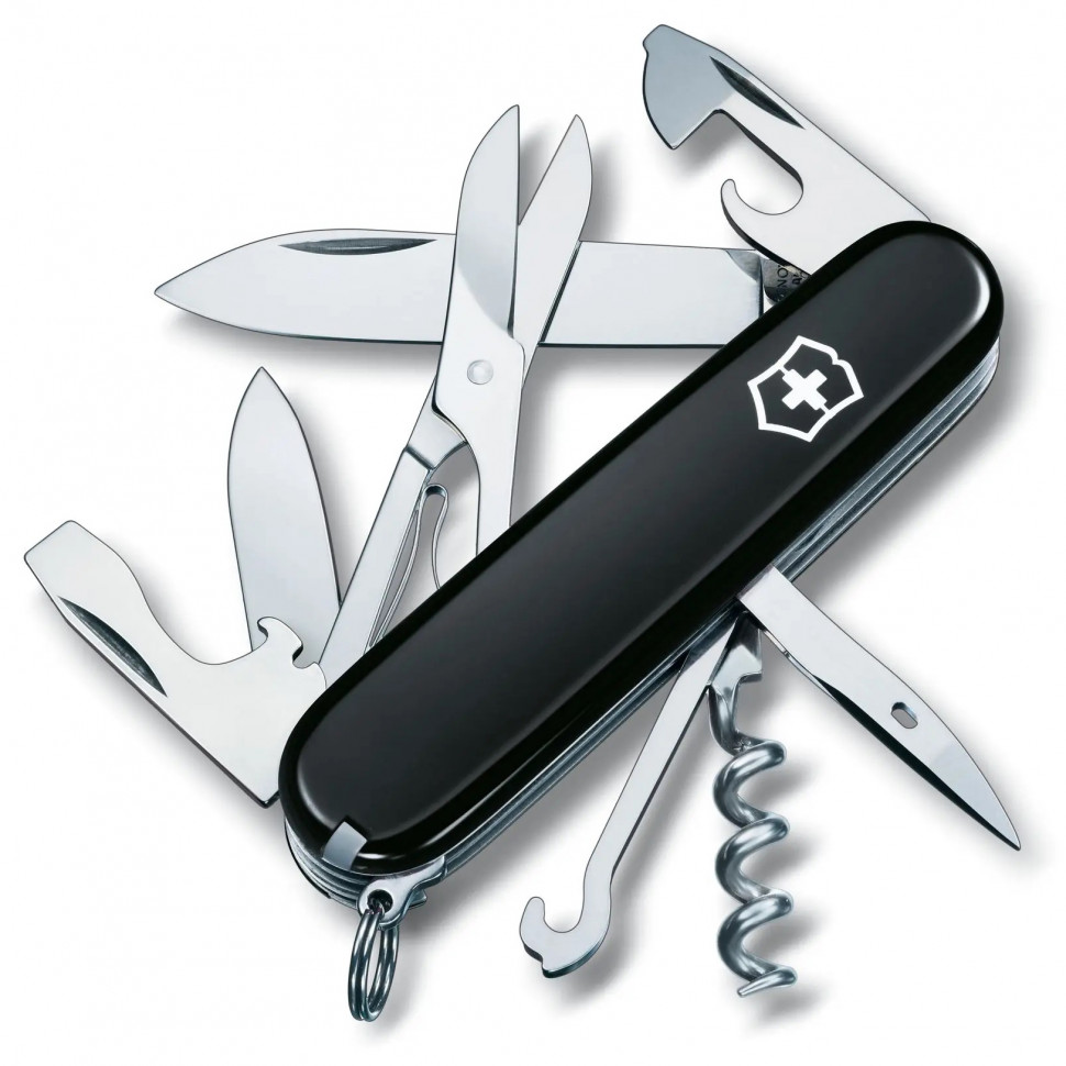 Складной нож с инструментами Victorinox Climber среднего размера для путешествий и альпинизма. Складной нож с инструментами Victorinox Climber обладает 14 функциями со своей востребованной остротой, прочностью и интуитивно понятным назначением. Складной нож с инструментами Victorinox Climber - незаменимый набор инструментов у всегда под рукой. Складной нож с инструментами Victorinox Climber - преимущества: отлично подходит для разрезов веревок при туризме и альпинизме 14 функций использования наличие ножниц и многоцелевого крюка Складной нож с инструментами Victorinox Climber обладает компактным размером 91 мм. и маленьким весом 82 грамма. Складной нож с инструментами Victorinox Climber - инструменты: большой клинок небольшой клинок консервный нож отвертка шириной 3 мм. отвертка шириной 6 мм. открывалка стриппер для проводов шило с ушком для ниток штопор ножницы многоцелевой крюк зубочистка пинцет кольцо для ключей.