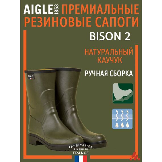 Короткие каучуковые сапоги AIGLE Bison 2 это обновленная версия модели Bison с более решительным внешним видом в стиле городской непромокаемой обуви и одежды. Как и прежде поверхность каучука имитирует кожу с её пористой структурой. Классическая подошва усиления на мыске и пятке сделаны абсолютно идентично как у кожаных сапог, но это каучуковые сапоги, которые не промокнут никогда в отличие от обуви из кожи. Внутри быстро высыхающая подкладка Softex. Специальная форма подошвы с каблуком обеспечивают фантастическое сцепление и очищается от прилипшей грязи в движении. Короткие каучуковые сапоги AIGLE Bison 2 - характеристики: Вес - кг. (размер ). Габариты: h= см., a= см., e= см., с= см. (размер ).