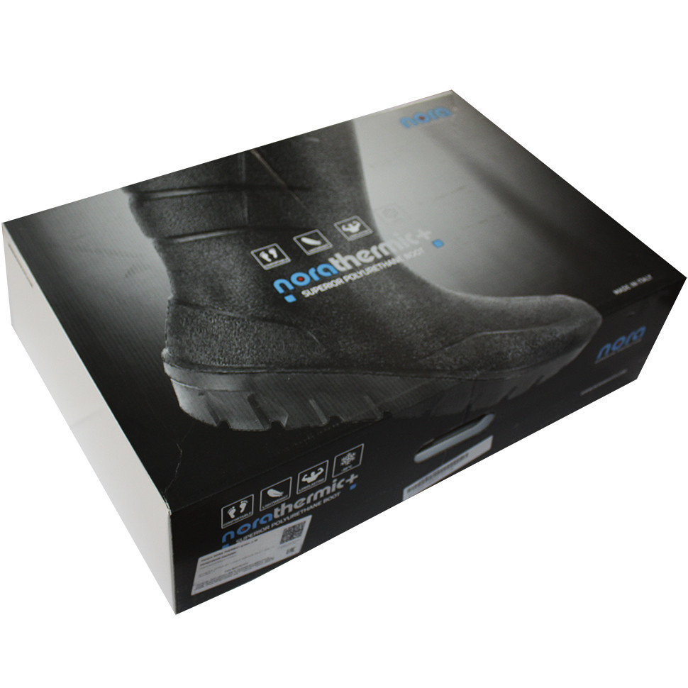 Полиуретановые сапоги NORA Thermic Black: - экологически чистые - устойчивы к агрессивным средам (противогололёдным реагентам, солям, нефтепродуктам, растительным и техническим маслам) - устойчивы к истиранию, царапинам и порезам - температурный диапазон использования от +18°С до -50°С - 100% водонепроницаемость - искусственный мех – легко сушится, улучшает теплоизоляцию - средний срок службы: 3-7 лет - малый вес - на 40% меньше, чем у резиновых сапог - производятся только в Италии От таких же лёгких сапог из материала ЭВА, сапоги из полиуретана отличаются высокой прочностью, имеют удобную анатомическую подошву. Благодаря чему служат во много раз дольше и намного удобнее при длительной ходьбе. Не нужно забывать народную мудрость: "Скупой платит дважды". Не имеющие аналогов тёплые полиуретановые сапоги NORA Thermic Black с высоким голенищем. Полиуретан отличный теплоизолятор, так как в его пористой структуре содержится воздух, а он обладает самой малой теплопроводностью. Сапоги производятся методом литья из единой массы полиуретана, что делает их абсолютно водонепроницаемыми. Искусственный мех внутри сапога (для комфорта, а не для тепла), разработан специально таким образом, чтобы отводить влагу при потении. Отливаемая масса полиуретана смешана с антибактериальной добавкой, которая не позволяет развиваться бактериям и плесени внутри сапога (забудьте о неприятном запахе из сапог). Малый вес сапог экономит Ваши силы при ходьбе – Вам покорятся большие, чем прежде, расстояния комфорта и тепла для Ваших ног. Подошва очень устойчива и превосходно защищает от скольжения. Полиуретановые сапоги NORA Thermic Black - характеристики: экстремальный температурный предел для использования -50°C; температура комфорта от 5°C до -30°C; протестированы в экстремальных условиях без повреждений: 200000 изгибов при -26 °C; теплая и быстросохнущая подкладка из акрила обеспечивает невероятный комфорт; удобная форма сапога соответствует анатомии стопы ноги; широкая колодка способствует лучшей циркуляции воздуха; толщина сапоги подобранна для достижения максимального баланса защиты от холода и сохранения эластичности изгибания сапога; сапог выполнен из полиуретана разной плотности: мягкий, пористый для голенища и более плотный, прочный для подошвы; 100% водонепроницаемость благодаря монолитной конструкции сапога без швов; носок сапога дополнительно усилен вставкой из кевларовой ткани; более толстая подошва в районе пятки обеспечивает амортизацию и защищает от плоскостопия.