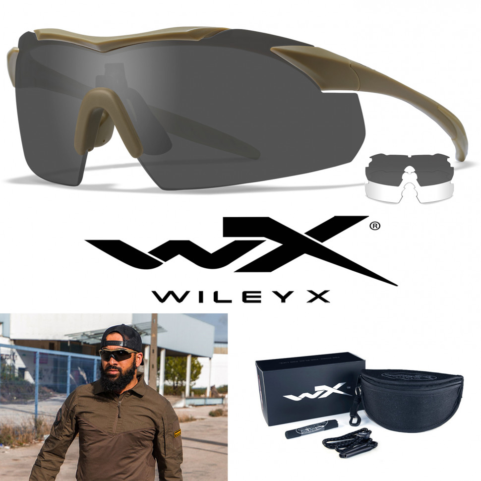 Баллистические очки для стрельбы с защитой от осколков Wiley X Vapor Matte Tan (Clear-Grey)