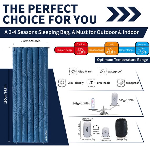 Спальный мешок NATUREHIKE Cicada Wing CW295 Blue (утиный пух)