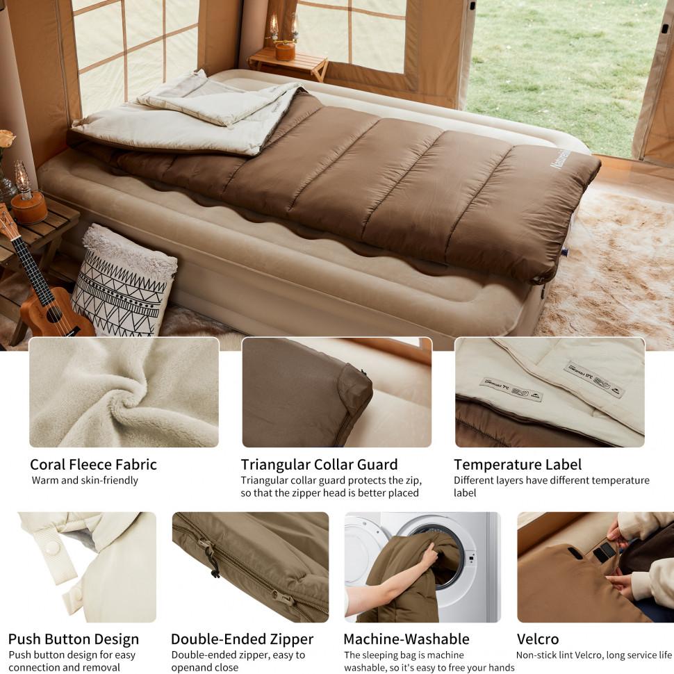 Спальный мешок NATUREHIKE Thermal Cotton, трехслойный, 90х210см, коричневый