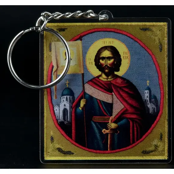 Брелок двухсторонний "икона Александр Невский" из оргстекла (акрила)