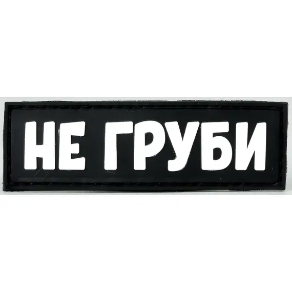 Нашивка, патч "Не груби" ПВХ тактическая с липучкой. ПВХ быстросъемная нашивка на липучке - велкро, для одежды, шапок, рюкзаков, сумок и тд. Размер: 25х80мм