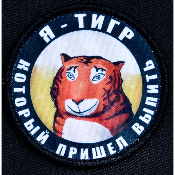 Нашивка, патч "Тигр который пришел выпить" тактическая с липучкой. Быстросъемная нашивка на липучке - велкро, для одежды, шапок, рюкзаков, сумок и тд. Размер: 80мм