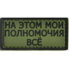 Нашивка, патч "На это мои полномочия все" ПВХ тактическая с липучкой.ПВХ быстросъемная нашивка на липучке - велкро, для одежды, шапок, рюкзаков, сумок и тд.Размер: 30х60мм