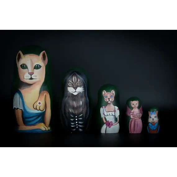 Русская авторская матрешка кошки Полностью ручная работа.