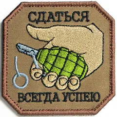 Нашивка, патч "Сдаться всегда успею" тактическая с липучкой. Текстильная быстросъемная нашивка на липучке - велкро, для одежды, шапок, рюкзаков, сумок и тд. Размер: 80х80мм
