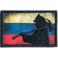 Нашивка, патч "Силуэт пожарного на фоне триколора" тактическая с липучкой. Текстильная быстросъемная нашивка на липучке - велкро, для одежды, шапок, рюкзаков, сумок и тд. Размер: 90х60мм