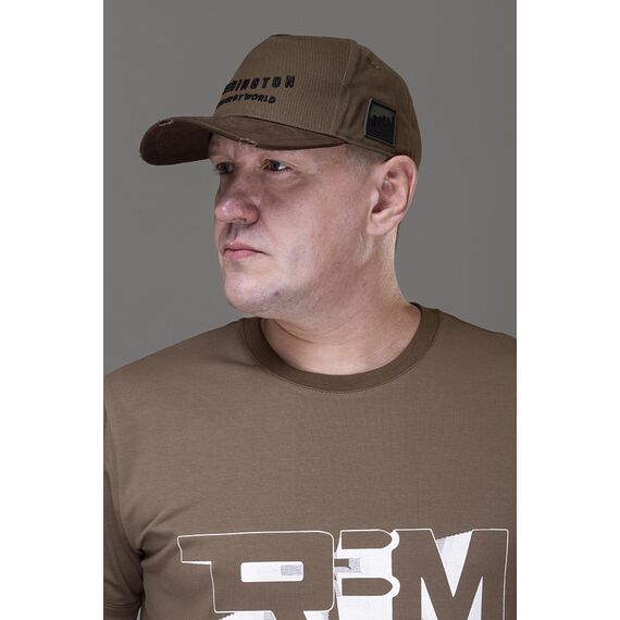 На передней части бейсболки размещена аккуратная вышивка с логотипом Remington, подчёркивающая принадлежность к бренду и его классическому стилю.
